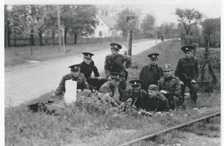 Inspektor FS Novák je uprostřed v horní řadě. Dobře patrné je smíšené složení družstva SOS. Příslušníci FS, dva četníci (jeden s četnickou přilbou, druhý s lodičkou) a jeden státní policista (vlevo v černé uniformě).