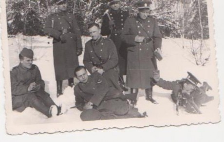 V levé dolní části fotografie je sedící poddůstojník čs. armády, v pravé dolní části je ležící financ za lehkým kulometem. Právě se natahuje pro zásobník ke kolegovi vedle něj.