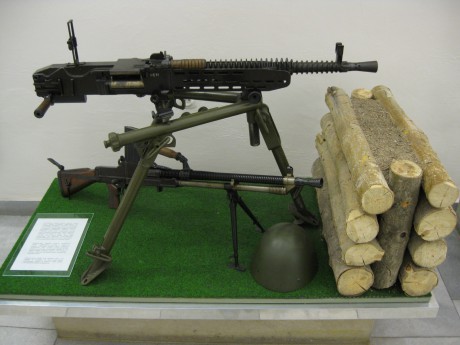 Větší, těžký kulomet vzor 37 byl pouze ve výzbroji armády. Menší, lehký kulomet vz. 26 měly i jednotky SOS. Text vlevo od kulometů je věnován četnickým pohotovostním oddílům, které byly zálohou praporů SOS.